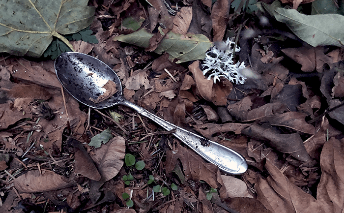 Early in our walk on the way down the hill toward Riverside Drive, we saw something shiny down the embankment. We crawled over the guard rail and retrieved it.