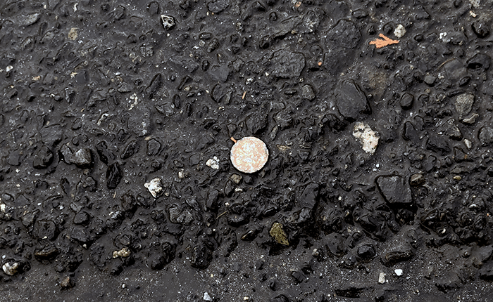 A single well-runover penny. The last time we got shut out finding money during the week was mid-March. This kept our streak alive. Barely.