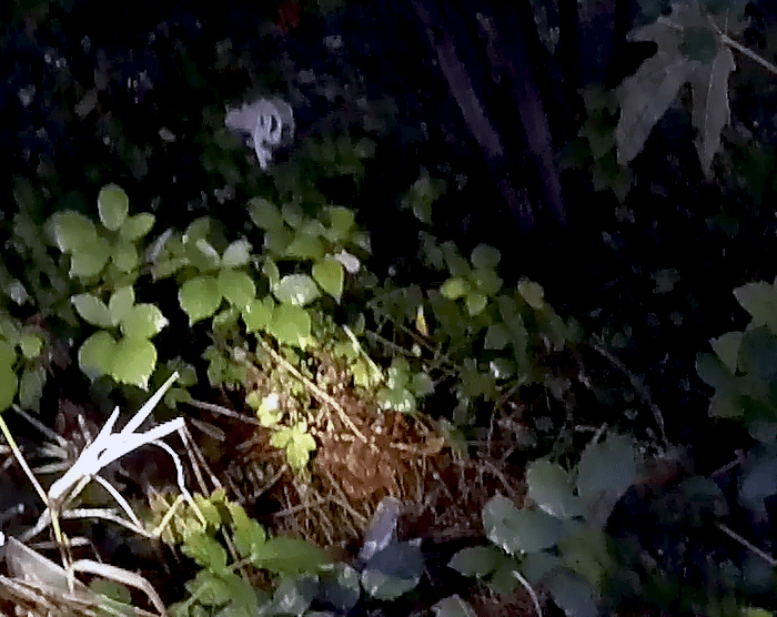 A little later, we picked up some wood and tossed it into the bushes. When it landed, we saw a beer can get tossed into the air above the bushes and disappear again.