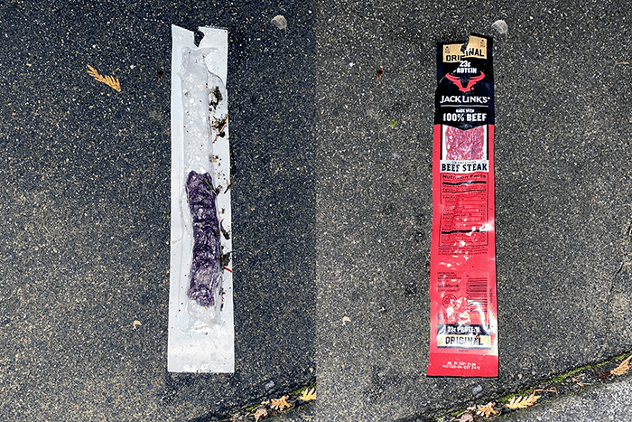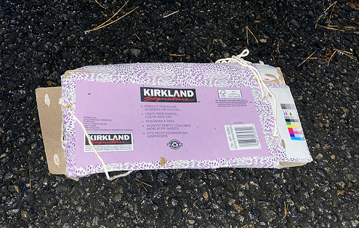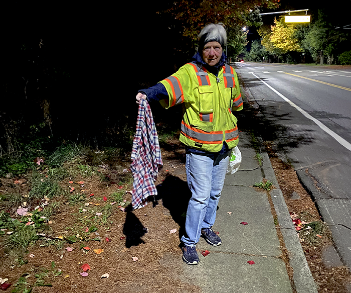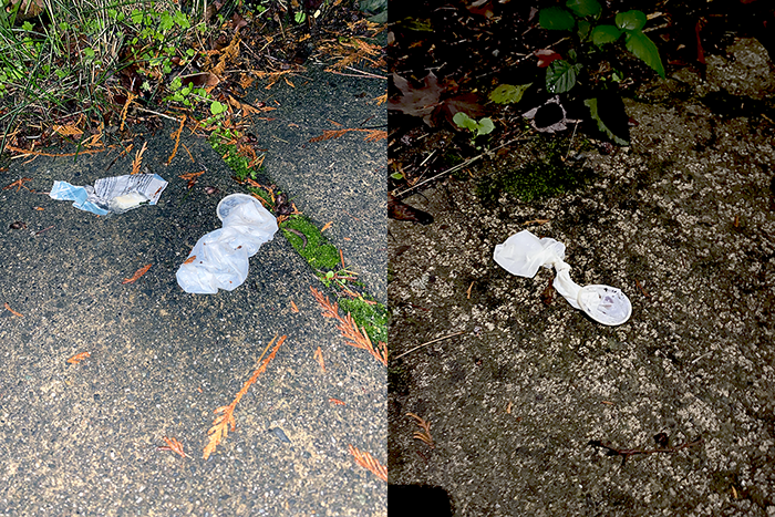 On Juanita-Woodinville Way, we picked up two condoms on the sidewalk, one stuffed back into the wrapper.