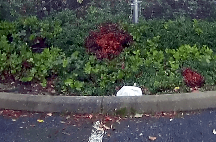 At the park-and-ride, we found the cat owner’s answer to littered dog poop bags.