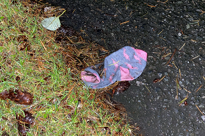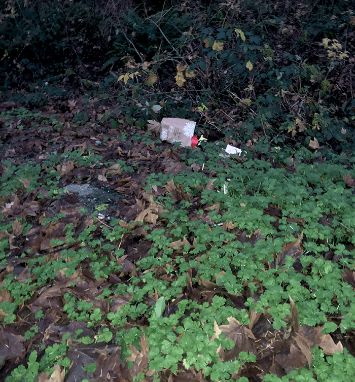 We actually saw this Saturday afternoon after our morning walk. We discussed walking down to clean it up on Sunday afternoon, but didn’t. We paid for it today. There was a receipt in the mess from a McDonalds in Snohomish. They travel all the way here to dump their trash on Norway Hill?