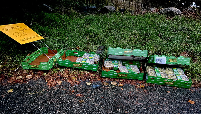 “Too much good food. FREE. Take as much as you like.” We liked one pack of them.
