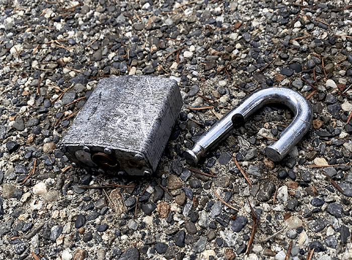 Today, at the same location, we found the body of the lock. The lock is very sturdy and looks to be expensive. If we put it back together, we have no way to open it. That’s the key to the problem.