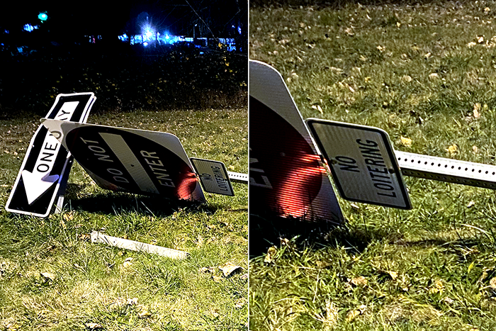 We never noticed the “No Loitering” sign. We guess it was added to discourage panhandling at the offramps. Loitering is defined as, “standing or waiting around idly or without apparent purpose.” On Saturdays we walk down the offramps picking up trash, but we have a purpose so it shouldn’t pertain to us. Wait, is begging considered a purpose?