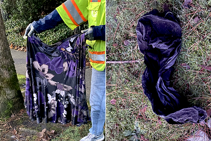 You may recall, we found a dress and a pair of pants in front of the apartments on Woodinville Drive.