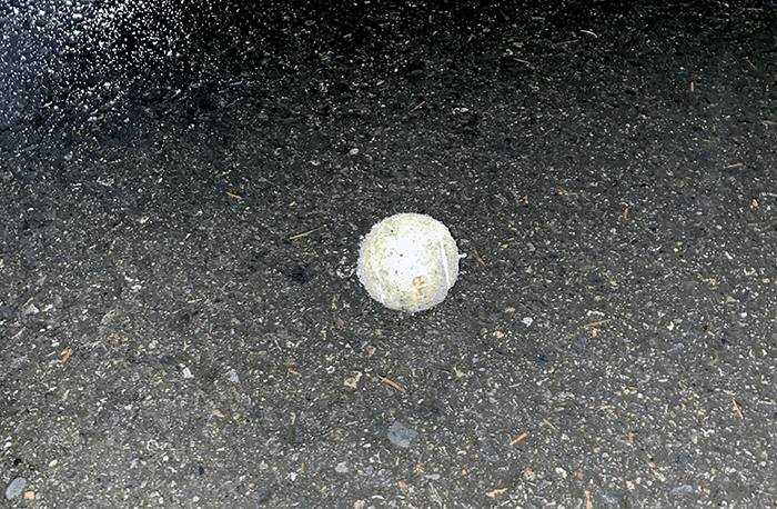 Ok. So did someone try to “strike” a car with a golf ball and it ended up with a “gutter ball?” Hope he had a “spare.” Hey, we’re running out of material here.