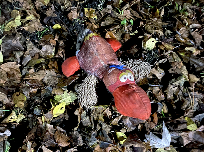 There is a house we pass that leaves a variety of dog toys for us to find.