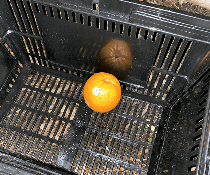 It was still covered in frost. We hauled it home and fed it to our recycle bin.