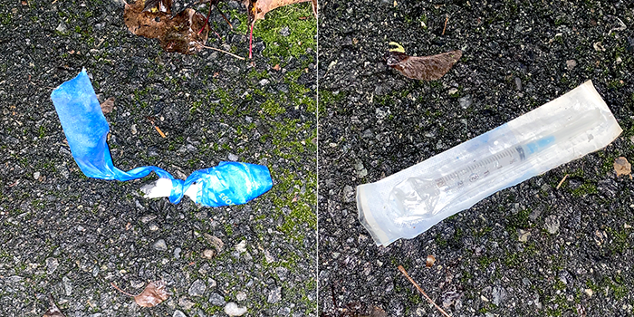 The one on the left was used, wrapped with a couple of Q-Tips and the other was still in the wrapper. We’re guessing after using the first one, they lost track of the second one.
