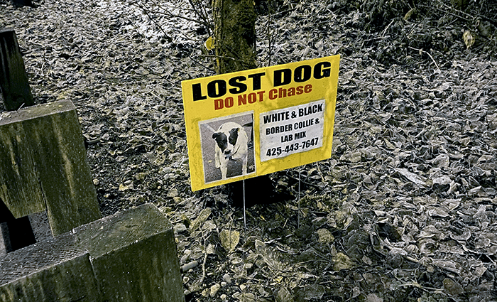 We see a lot of random lost cat/dog signs, mostly hand made. Today, we saw a lost dog sign.