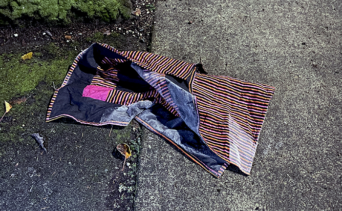 A pair of socks on the freeway onramp and a kid’s Seattle Seahawks knit cap on 112th Ave NE. We thought the colors of the cap were not very close to the Seahawks colors and it doesn’t mention the Seahawks. But it shows the number 12 implying the “The 12th Man” that the Seahawks have adopted. We’re thinking this was not an NFL-licensed cap. Wonder if the kid knows he has cheap parents?