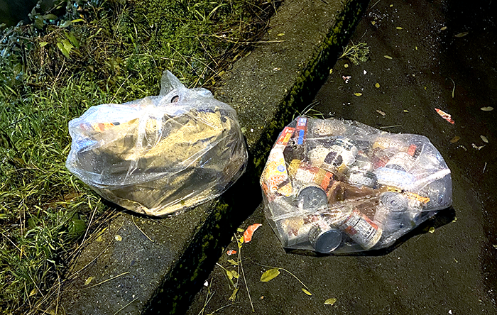 While running errands earlier in the week, we saw that someone dumped two bags of trash very near the dumpsters. This was at the parking lot in Bothell where we turn around on our Saturday route.