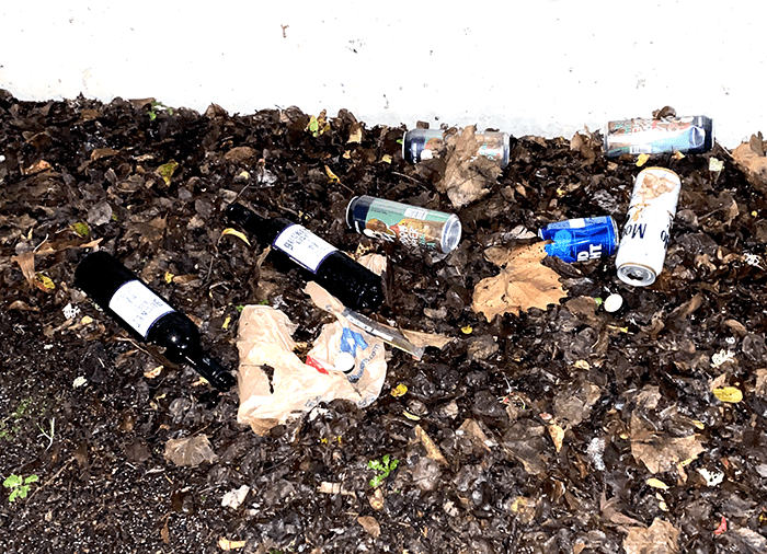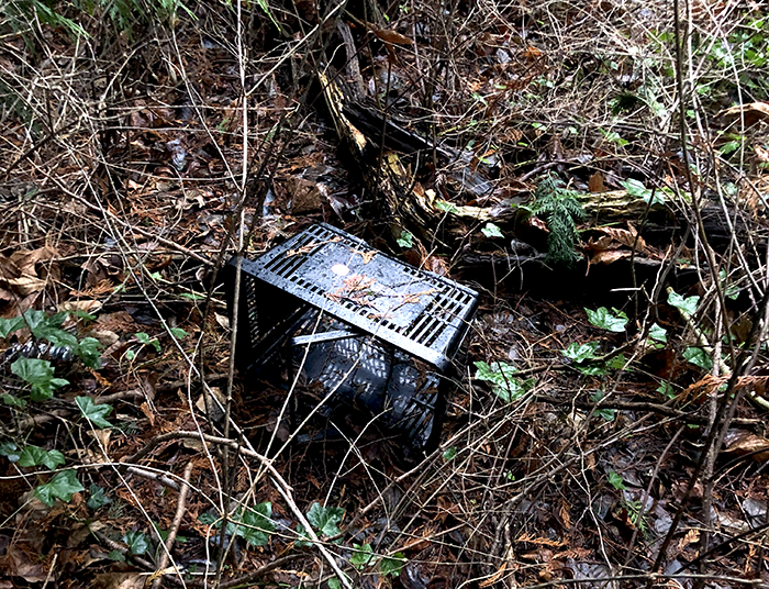 We picked this mess up and walked it down to the dumpsters but they were locked. So, we carried them over to a Safeway trash can. That’s where these came from anyway.