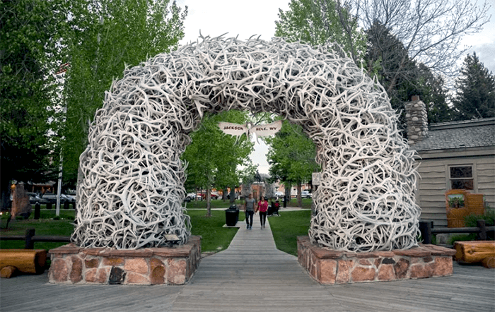 These are built from elk antlers. Elk shed their antlers every year. There are 1500 plus antlers in each arch. Lets see, fifteen-hundred divided by five antlers per year… never mind. Maybe we’ll just settle for a coat rack.