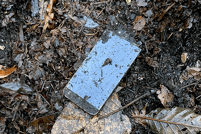 It had been run over several times and buried for a while. When we got it home, we were able to get the SIM card out. It was an AT&T card, the same as our carrier. We put the SIM card in an old iPhone we have but it was not recognized. Too bad. The iPhone 5 was introduced in 2012. It would be fun to call the owner eight years later to let them know we found their phone.