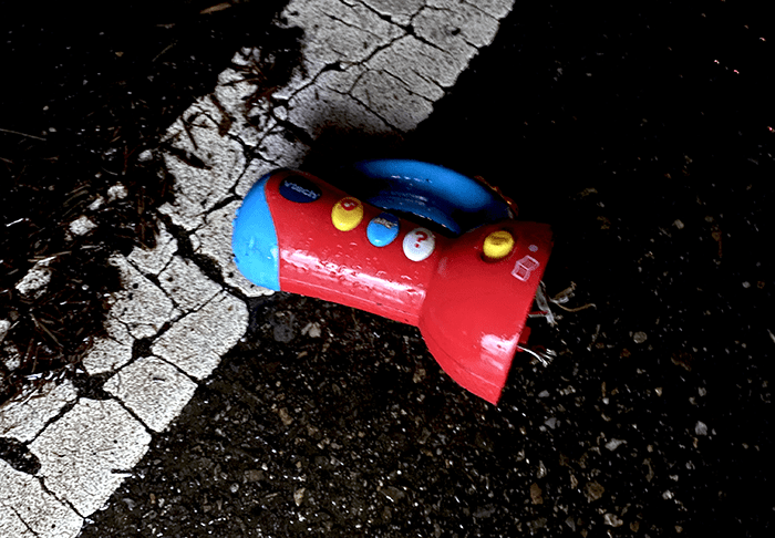 We found a discarded “VTech Spin and Learn Color Flashlight” on Riverside Drive.