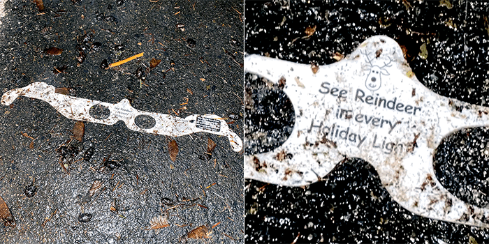 We have an apology to make. Last Saturday, we found a pair of cheap cardboard spectacles and made some fun about seeing reindeer in Christmas lights when you want to see lights.