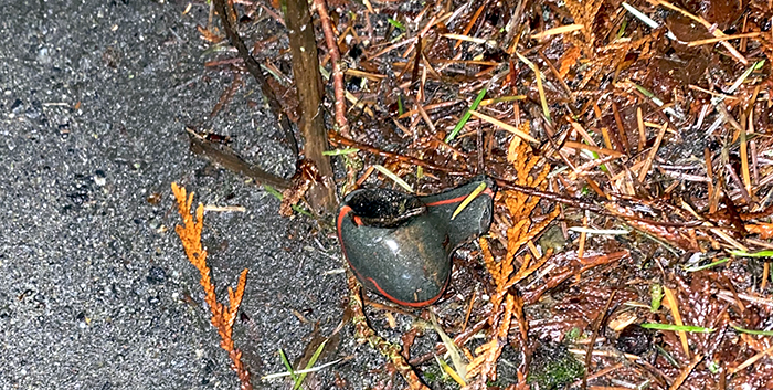 We put the volley ball in a place where folks can see it. The third ball wasn’t a ball at all, but part of a lamp. It was at the bottom of the Brickyard Road hill and probably rolled down the road into the ditch. It was broken and beat up and ended in a recycle bin. Only the golf ball made it back to our ball collection.