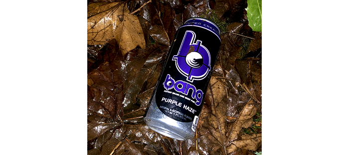 We found an unopened Bang Purple Haze energy drink.
