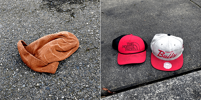Three hats. The one on the left was in the park-and-ride parking lot. The other two were in front of the apartments on 112th Ave NE with some other trash.