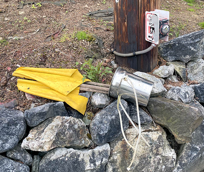 This one was in May of last year. Putting these flags up were part of a huge ‘Safe Streets and Sidewalks’ tax levy. For that money, you’d think they could afford to attach the buckets better. Maybe duct tape?