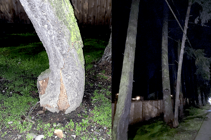 We passed a tree that had cracked during last week’s windstorm and was being held up by the power lines.
