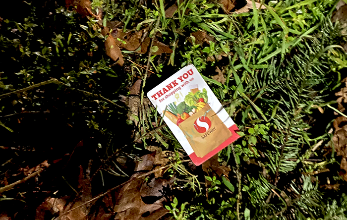 We figured someone placed it atop their car and forgot it. By the 7-Eleven, we also picked up a car registration and put it in our recycle bag. When we got home, we found the purse contained documents including a driver’s license and Social Security Card that matched the car registration found at the 7-Eleven. Furthermore, there were credit cards with other names. Normally, we would attempt to track down the owner, not hard with a driver’s license. In this case, we gave the articles to the Bothell Police for them to sort out.