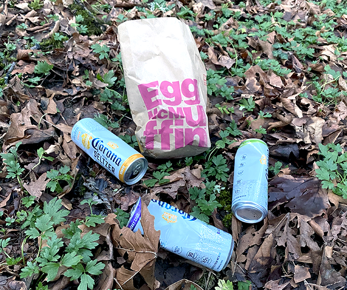 Sunday was much warmer at 37°F (+3°C) so we decided to do our Saturday trash-walking route on Sunday. And it paid off.