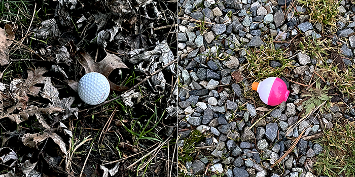 Well, one really. A golf ball with no golf courses in the area. The other was a fishing float. Last week we joked about putting up a “No Fishing” sign at Lago Di Norway Hill.