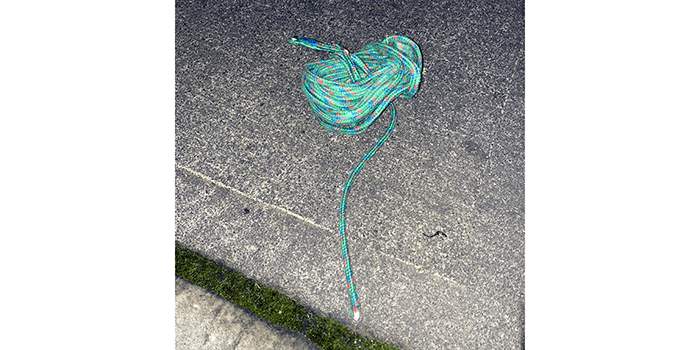 In an intersection, we found a long piece of rope that we spent quite a bit of time coiling and wrapping up.