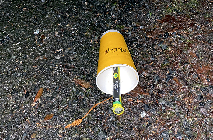 We found the two cups first, tea, of course then the bag. It had the same McLitterers‘ contents. We are well over sixty of these in our Trash Walking. And we have a drawerful of McDonalds bags to prove it. They make great recycle bags. Each one lasts two or three weeks, so we won’t be needing to order any from Amazon any time soon.