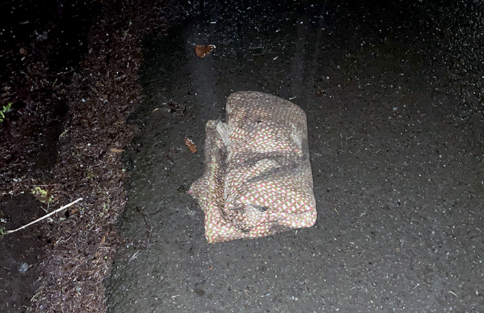This morning we had off-and-on light rain and we found little of interest. We did remove a roadkill bird from the street, but only a small one.