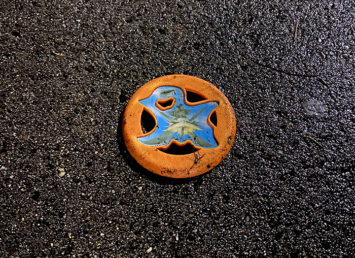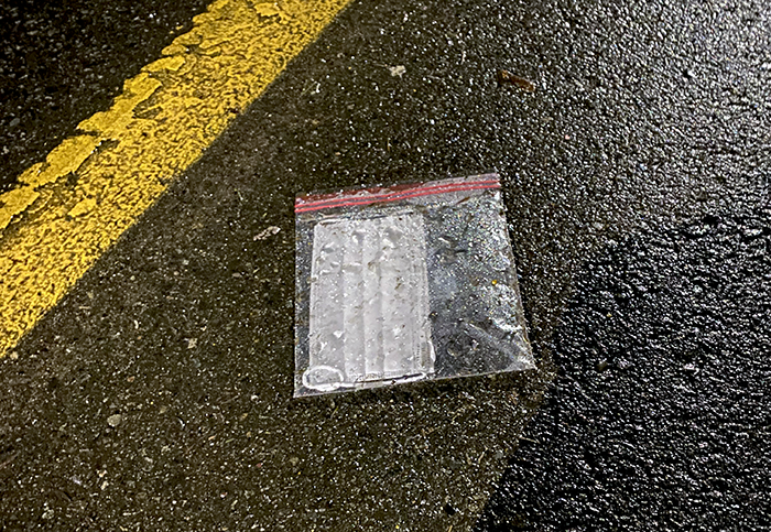 This is about the tenth one we’ve found always in the vicinity of the Safeway store. We’re thinking Safeway gives them to their employees to wear while working. But why does the employee take them then toss them unopened? Maybe this guy is wearing the mask without removing it from the bag? Hasn’t he read the warning on plastic bags.