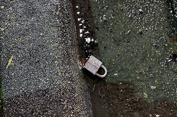 No key, of course. We’ve found ten or twelve locks without a key and we’ve found a bunch of keys. One day, when we are very bored, we should see if there are any matches.