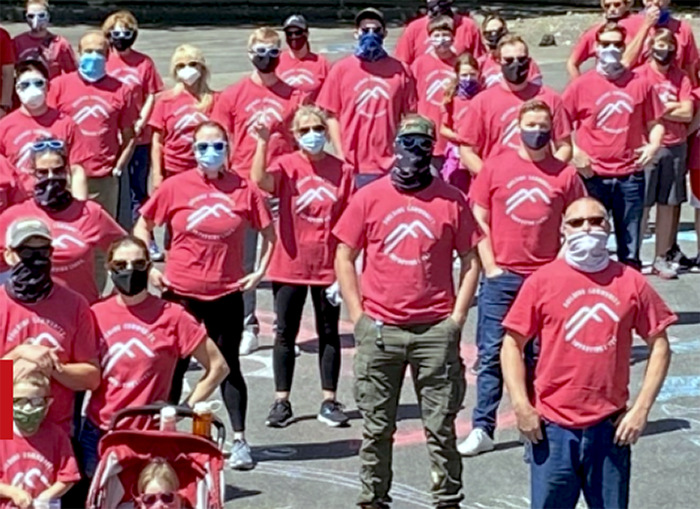 A sweatshirt that has seen much better days and a neck gaiter. The neck gaiter is from a company named Sequoyah Electric. Here is an employee photo from their website.