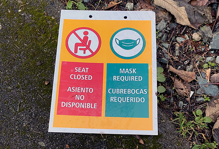 So we read this as “Seat Closed because it is levitating” and “Masks Required but only if they are smiling.”
