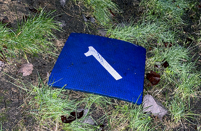 At the KinderCare, those rascally kids tossed number one over the fence again.