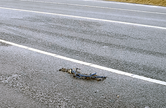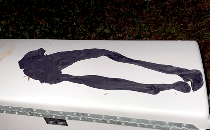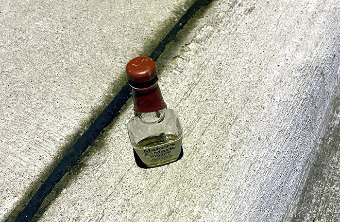Early in the walk, Chuck found an empty spray paint can that had been run over and put it in his bag. As it got lighter, we discovered the paint can was not empty.