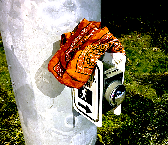 They didn’t have any of those yellow crossing flags, so this is a cheap substitute. Wonder if the city buys these in bulk?