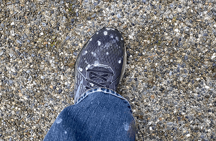 And the recycle bag leaked. We put a 600-mile limit on our shoes and checked the current mileage. A little over 400 miles, so 200 more until we can buy new ones. We need to find a can of black paint.