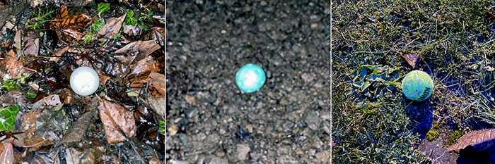 In all, we found three balls, the Lacrosse ball, a generic dog ball and a tennis ball which was probably also a dog ball. Maybe the Lacrosse ball was a dog’s ball too, but we’ve never seen a dog play Lacrosse.