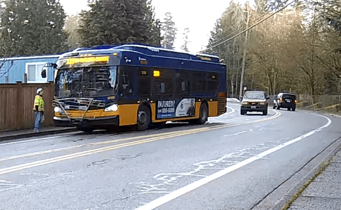 As we were walking along Woodinville Drive, Janet was ahead on her side of the road when a bus approached from behind us. Chuck waved to the bus driver who waved back. As the bus passed Janet, she waved but the driver ignored her.