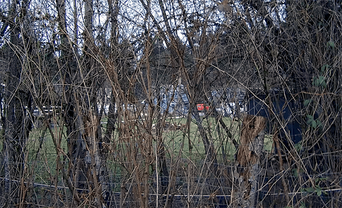 We’ve found this frisbee outside this fence several times. We have joked that we should apply the three-strike rule. If we find it outside the fence three times, we would confiscate it, but we always toss it back. Well, most of the time. One time, it was down by the fence. Chuck climbed down to retrieve it and gave it to Janet to toss it back. This was the result.