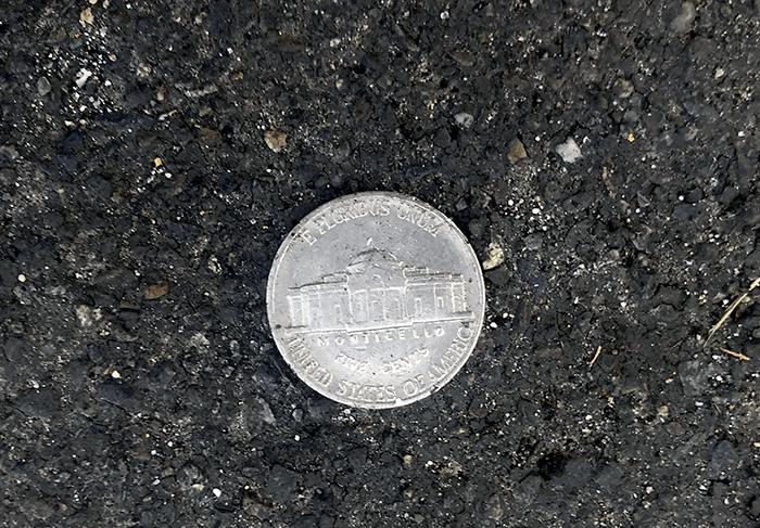 A nice, shiny Nickle, making a total of only six cents this week. We’re not complaining, mind you, but this is about a half-penny per hour, much below minimum wage. We may need to contact Nancy.