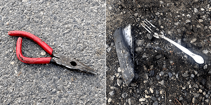 We picked up several of these tossed in the street. They are plastic bags with a business card and a few rocks in them to keep them in place. The ones in the past were for house cleaning services. These were for landscaping. We kept one of these cards. If we ever need a landscaper, we will know who not to call.
