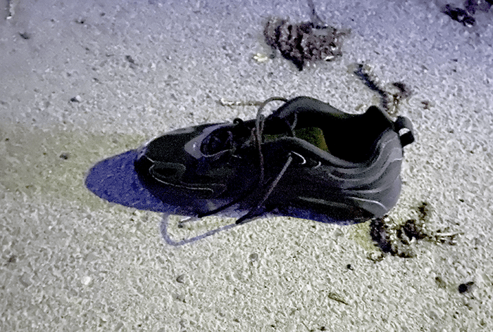 Over the weekend, we spotted this shoe in the middle of the road near the 7Eleven on Juanita-Woodinville Way.