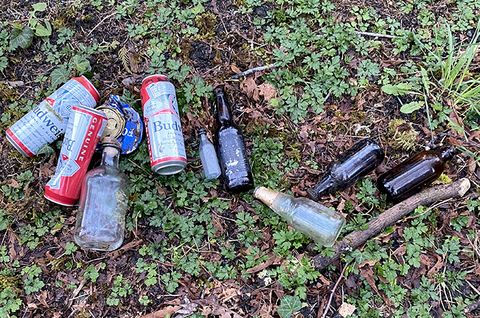 Of course, you can’t find just one. We ended up with a whole collection of trash hiding in the ivy.
