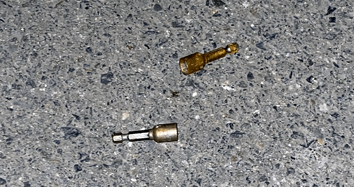 Two drill sockets together. We find many of these, but these were within three-feet of each other. We looked around for more, thinking a socket set got dropped, but no dice.