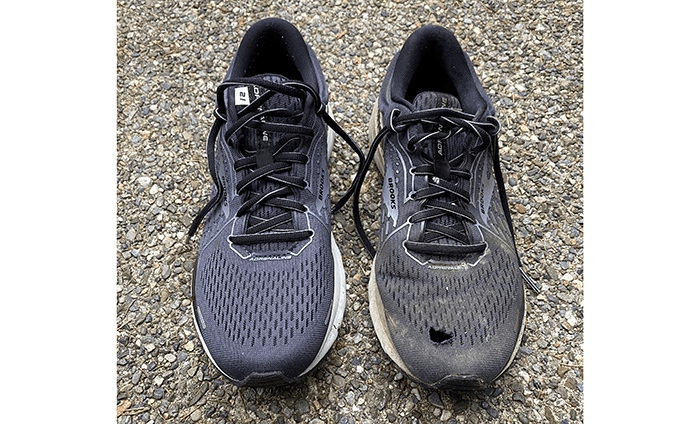 Which shoe has six miles on it and which has 630 miles? We’ll provide the answer next week.